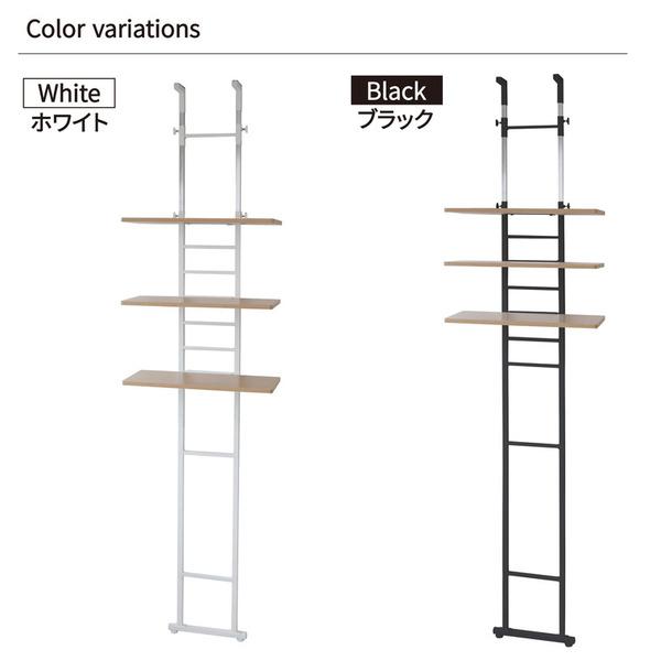 棚板はハシゴに引っ掛けるだけで、9段階調整の簡単セッティング。