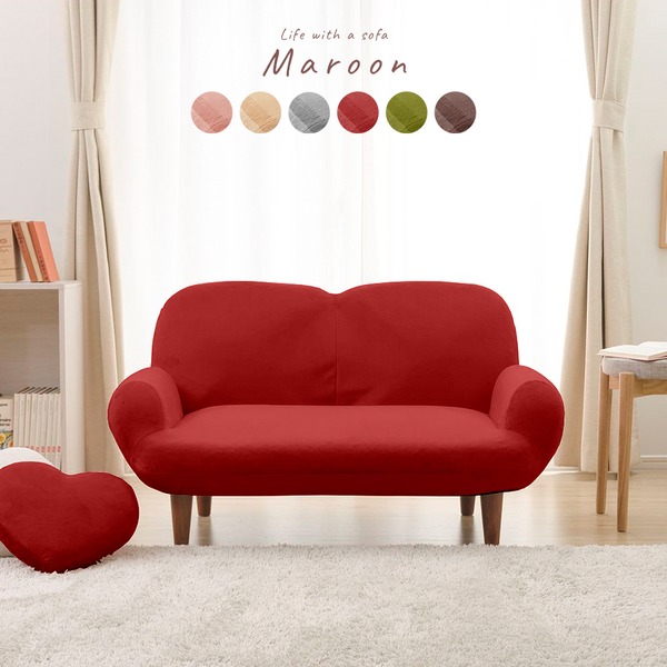 愛らしさと快適さが融合した、日本製 国産 の魅力的なフロアソファ 低い フロアタイプ ローソファ ロータイプ コンパクトでありながらも、丸みを帯びたデザインがおしゃれさを演出 肘付きの2人掛けで、14段階のリクライニング機能も備えています 赤と茶色の脚がアクセントとなり、心地よい空間を演出します 茶 赤 コンパクトソファー/ローソファ 低い フロアタイプ ロータイプ フロアソファ ー 【レッド・ブラウン脚】 肘付き 2人掛け 脚付き 14段階リクライニング 日本製 国