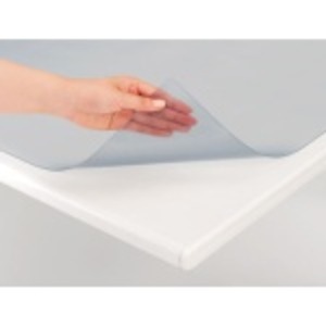 シャツの袖口が傷みにくい、全周ななめカット加工のデスクマット。特殊加工によりマウスが使えます。