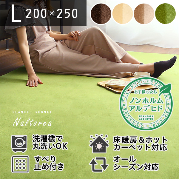 高密度フランネルマイクロファイバー・ラグマットLサイズ(200×250cm)洗えるラグマット