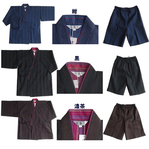 纏織りキングサイズ甚平です。3L・4L・5L用意しました。纏織りとは、元来江戸の世より火消が纏っていた、丈夫な装束の織り方を言います。纏織りは凹凸感のある特殊な織り方で、耐久性に非常に優れ、数代にわたって着繋がれることから高値で取引されています。通気性に優れ、吸汗性に優れていますので、これからの時期最適な商品です。