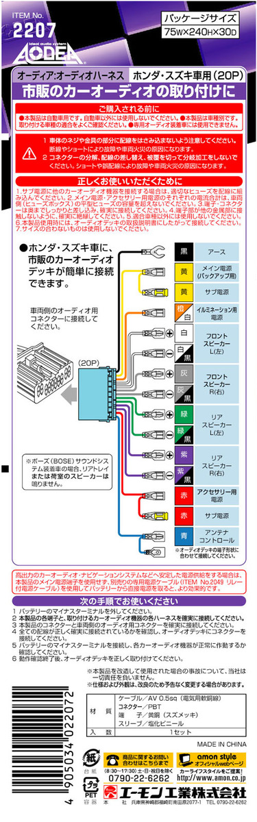 ・対応車種:ホンダ車・スズキ車
