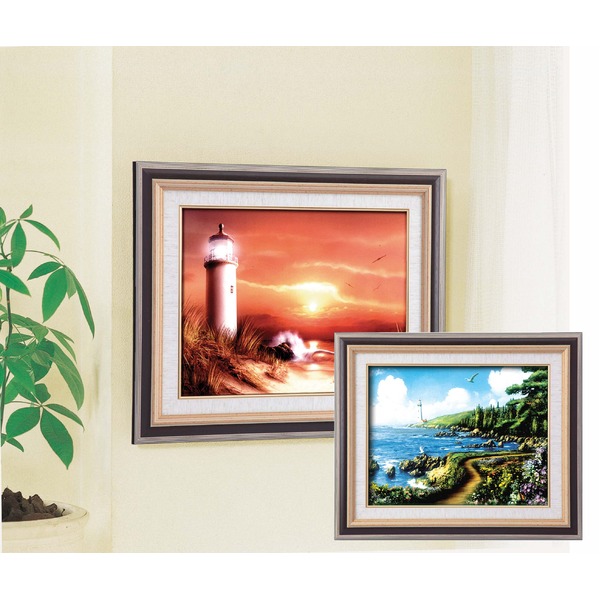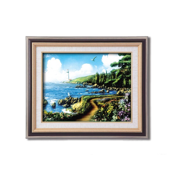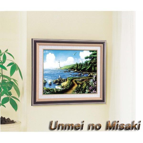 美しい海辺景色を描いた風景画 灯台画と絵画額セット絵画額 額縁 フレーム 絵画フレーム ディスプレイ 展示 インテリア 日用雑貨 生活雑貨 敬老の日 母の日 父の日