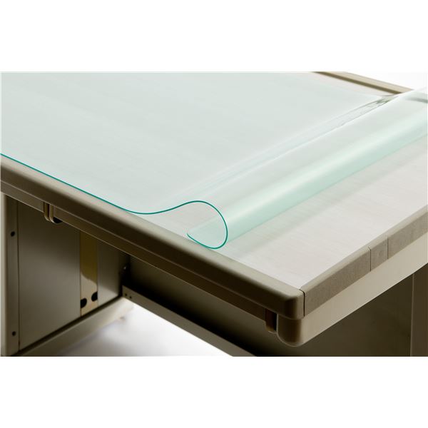 (キーワード: オフィス 事務 事務所 事務員 仕事 職場 仕事 仕事場 職場 会社 法人 整理 整理整頓 5s 5s 収納 耐久 効率 効率化 TCC562914 RDA0005651163 6389569 日用品 文房具 手芸用品 文房具 事務用品 画材 デスクマット 雑貨 手芸 机上収納 整理用品 透明なグリーンと滑らかな表面が特徴の、便利な下敷き付きシンプルデスク (テーブル 机) シート 日本製 国産 の軟質塩ビ製で、厚さ1.7mm、サイズは1195