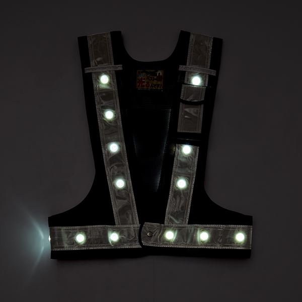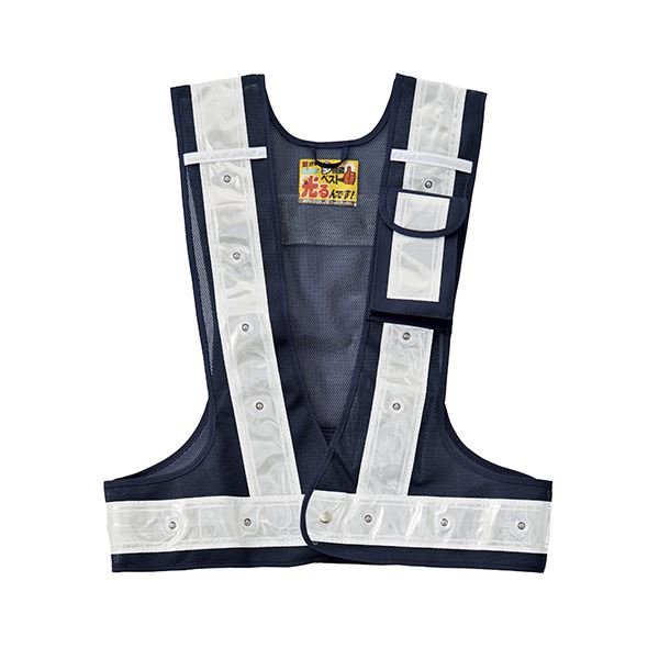 革新的な機能を備えた究極のLEDベスト 紺のメッシュと白の反射部で安全 安心 性を高め、白いLED光で明るさを提供 革新的な機能を備えた究極のLEDベスト 紺のメッシュと白の反射部で安全 安心 性を高め、白いLED光で明るさを提供