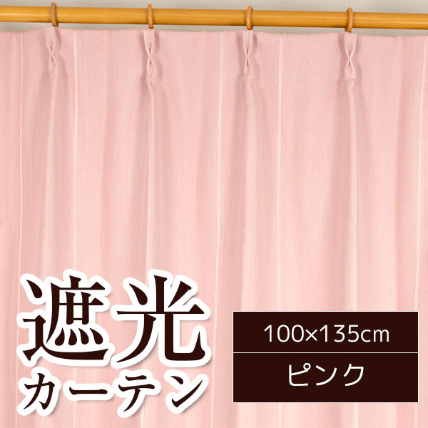 ストライプ柄 シンプル 遮光カーテン / 2枚組 100×135cm ピンク / 遮熱 2重加工 形状記憶 洗える ウォッシャブル 『ライル』 九装 送料無料