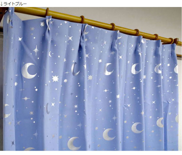 商品仕様: 1級遮光 遮光カーテン 2枚組 100×200cm ライトブルー 青 月 星 夜空 形状記憶 遮光 ステラ 九装