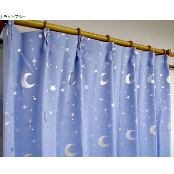 商品仕様: 1級遮光 遮光カーテン 2枚組 100×178cm ブルー 青 月 星 夜空 形状記憶 遮光 ステラ 九装
