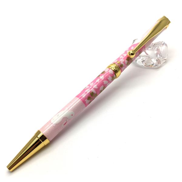 日本製 国産 ハンドメイド ボールペン/文房具 【うさぎ市松 桃色】 美濃和紙 友禅紙 0.7mm 文具 オフィス 事務用 用品 ステーショナリー 送料無料