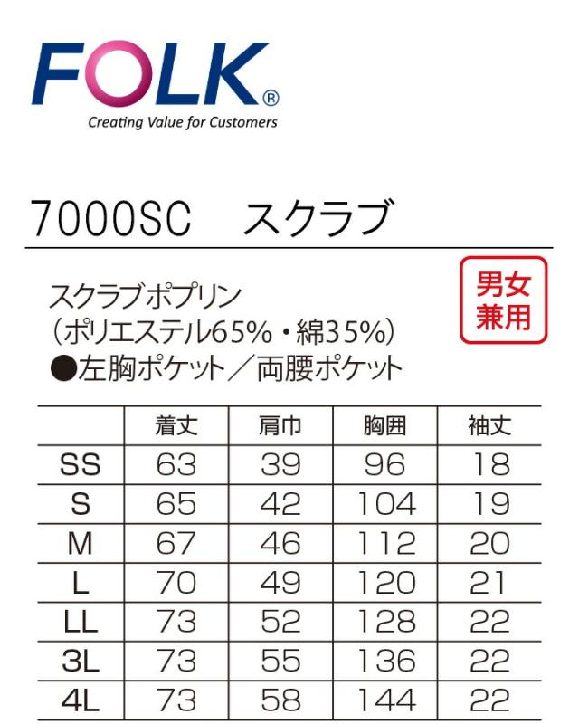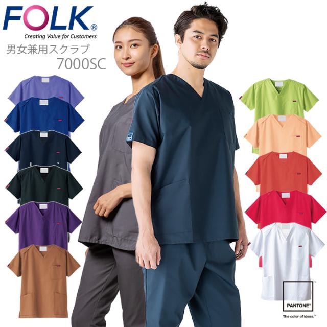 フォーク スクラブ 7000SC パントン ユニフォーム 男女兼用 レディース メンズ 白衣 医師 医療用 看護師 クリニック 術衣 FOLK PANTONE