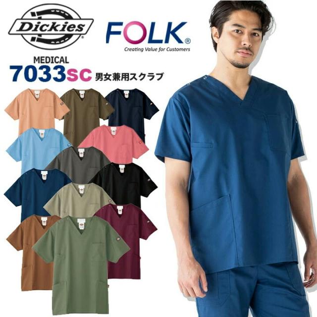 フォーク FOLK スクラブ ディッキーズスクラブ 白衣 ディッキーズ 7033SC スクラブ ストレッチ 男女兼用 ユニフォーム 医療用 病院 白衣 5017SCカッコイイ クリニック フォーク 術衣 人気 ピンク ネイビー ブラック ワイン カラフル