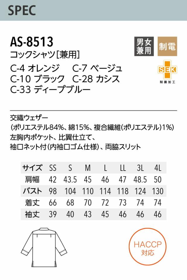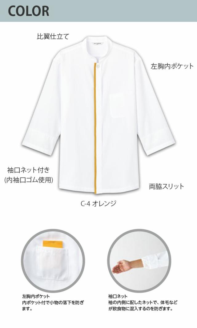 コックシャツ AS-8513 長袖 レディース メンズ 制電 制菌加工 袖口ネット 厨房 レストラン 食品工場 女性用 男性用 チトセ arbe アルベ