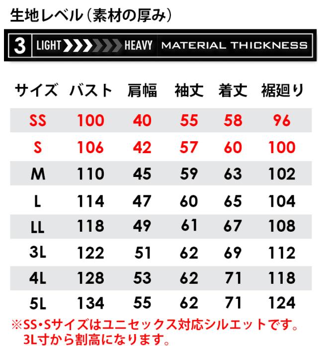 SS:バスト 100cm/肩幅 40cm/着丈 58cm/袖丈 55cm