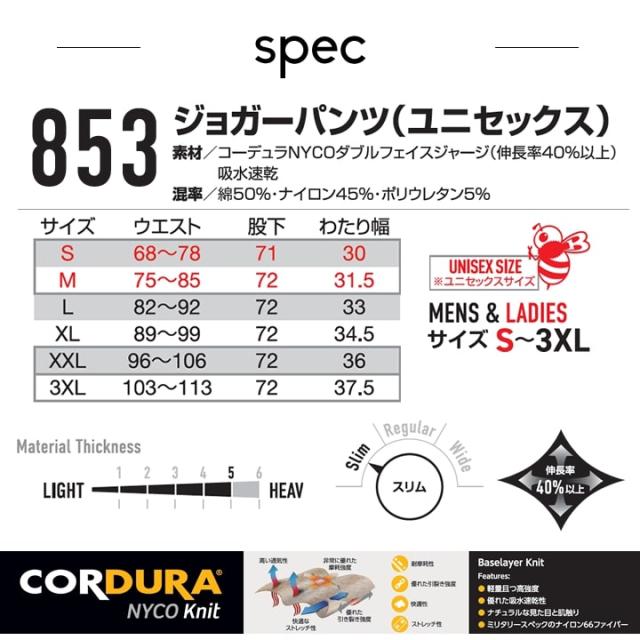 【即日発送】バートル ジョガーパンツ 2025AW新作 853 コーデュラストレッチ トラックパンツ 男女兼用 耐摩耗性 耐久性 吸汗速乾【秋冬】【春夏】アウトドア 登山 キャンプ スポーツ 作業服 作業着 防寒服 カーゴパンツ パンツ ズボン BURTLE