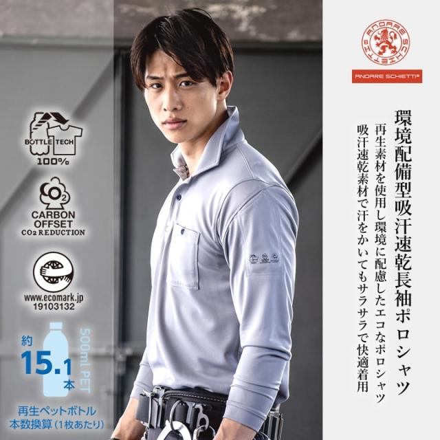 ポロシャツ 長袖ポロシャツ エコボトルテック AE-1698 ポロシャツ 長袖 吸汗速乾 UVカット 汗ジミ防止 消臭 再生PET素材 カーボンオフセット エコマーク 環境問題 メンズ レディース ユニフォーム イベント 春夏 秋冬 作業着 制服 CO-COS