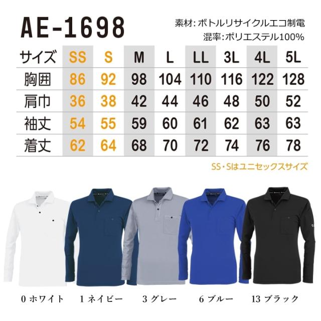 ボルトテックシリーズ エコボトルテック長袖ポロシャツ AE-1698