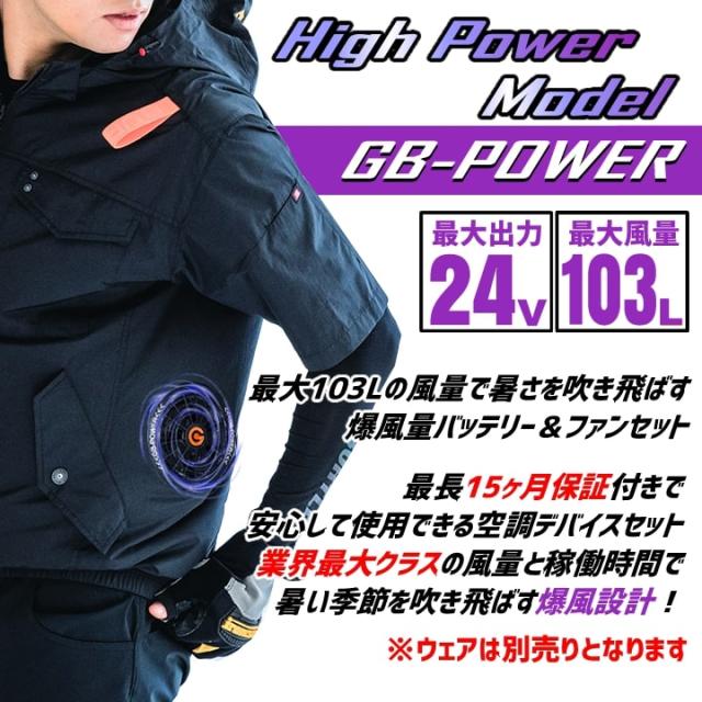 【即日発送】空調服用(24V専用 ファン&バッテリーセット)GB-POWER GB424 GF3 ファン バッテリー 長期保証 急速充電 空調ウェア ファン付きウェア対応 EFウェア 大風量 熱中症対策 春夏 作業服 作業着 長信ジャパン