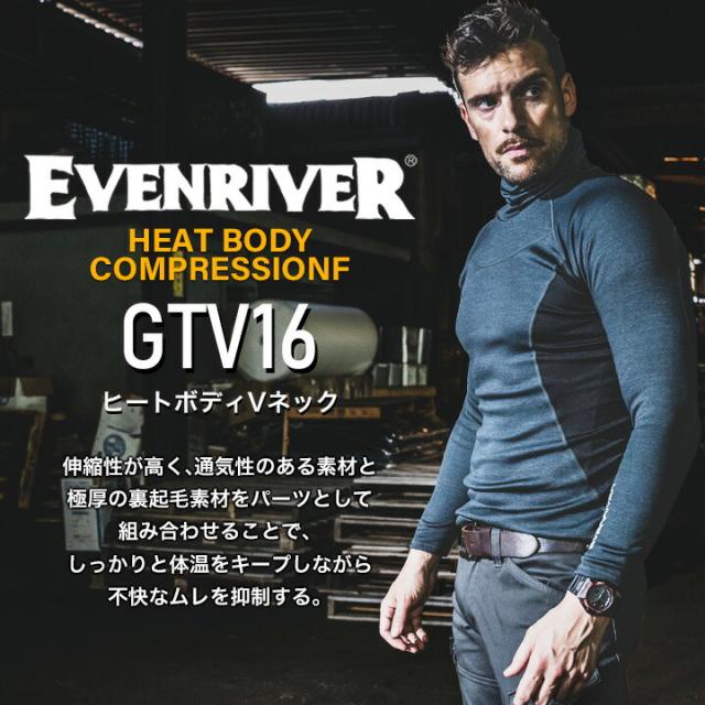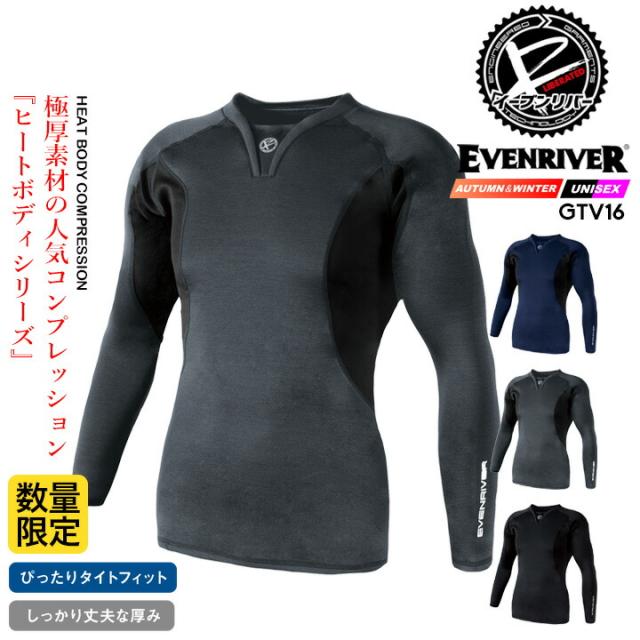 イーブンリバー 防寒インナー 2025AW新作 GTV16 Vネック 裏起毛 帯電防止 ムレ防止 ストレッチ 暖かい 秋冬 スポーツ アウトドア 通勤 男女兼用 メンズ レディース 移動 自転車 バイク 防寒服 作業服 作業着 ヒートボディーシリーズ EVENRIVER
