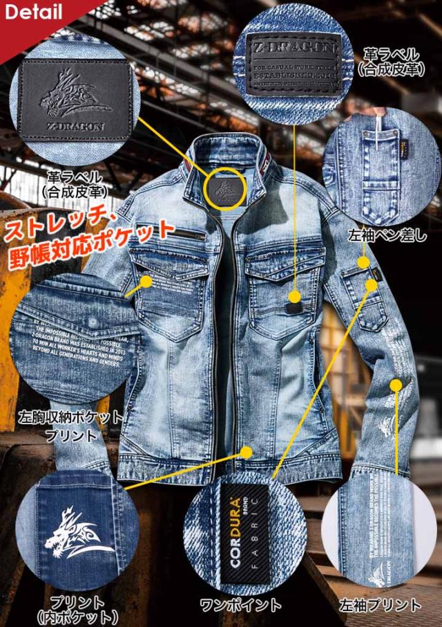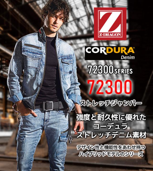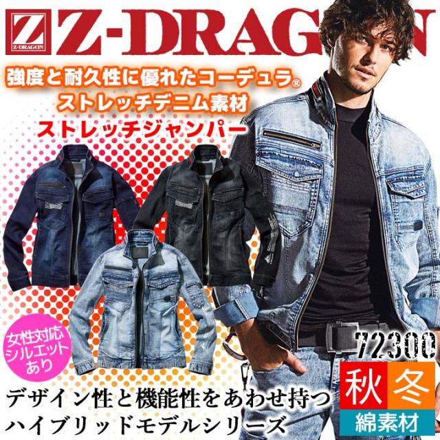 【即日発送】作業服 Z-DRAGON デニム コーデュラ ストレッチ ジャンパー 72300 秋冬 耐久性 野帳対応 男女兼用 ユニフォーム 作業着 自重堂 72300シリーズ