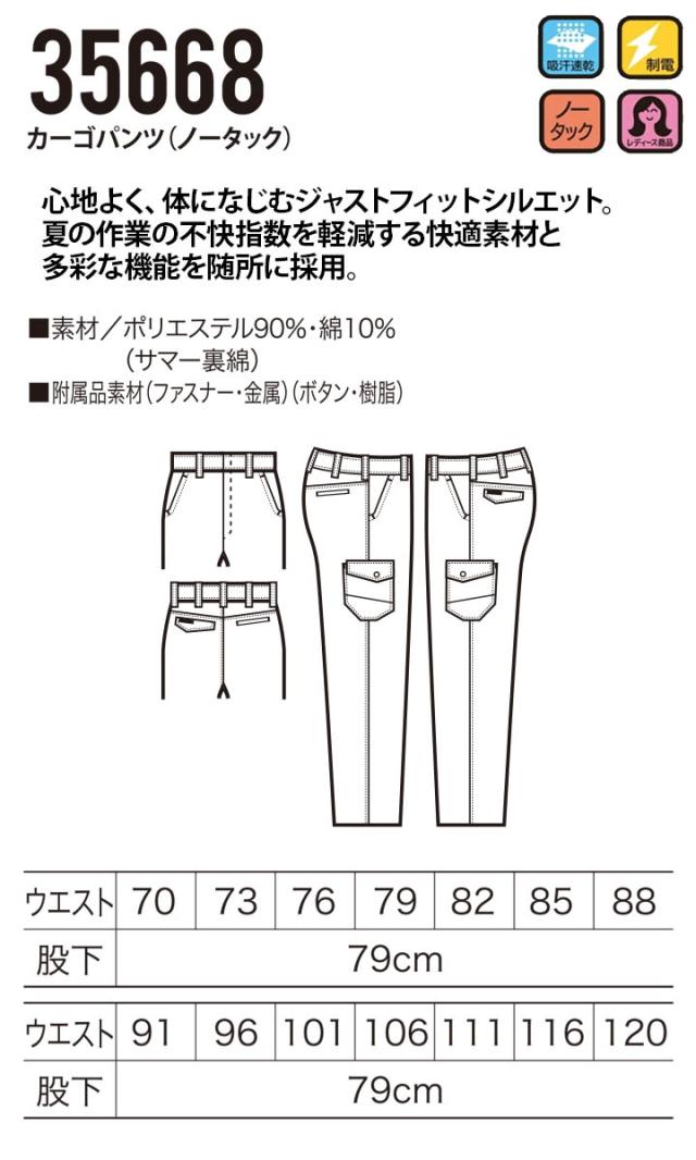 ノータックカーゴパンツ クロダルマ 35668 パンツ ズボン 男女兼用 メンズ レディース 吸汗速乾 制電 春夏 作業服 作業着【101-120】