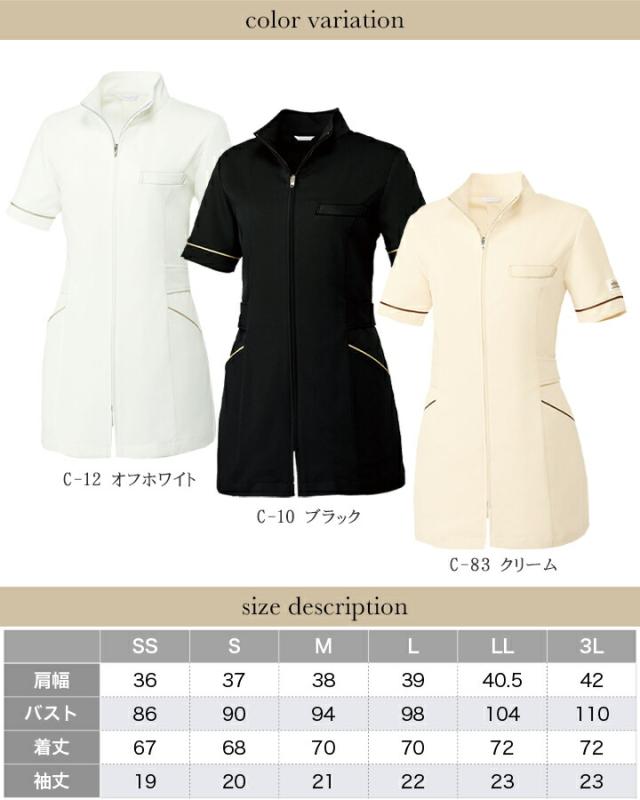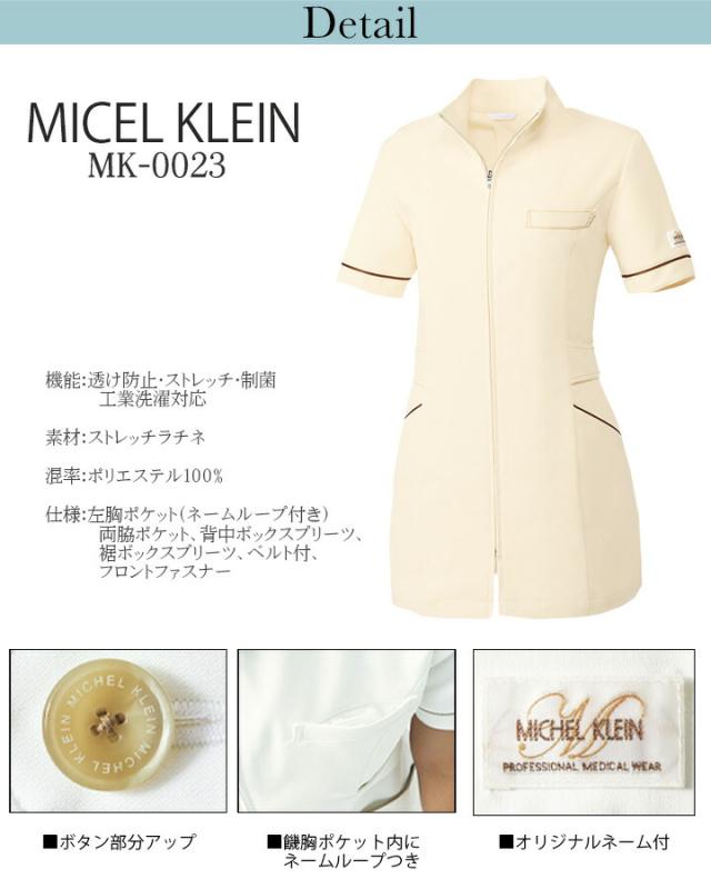 MICHEL KLEIN チュニック 医療 白衣 ミッシェルクラン MK-0023 半袖 ストレッチ 透け防止 おしゃれ レディース エステ服 メディカルウェア 受付 医師 医療用白衣 ホワイト ブラック