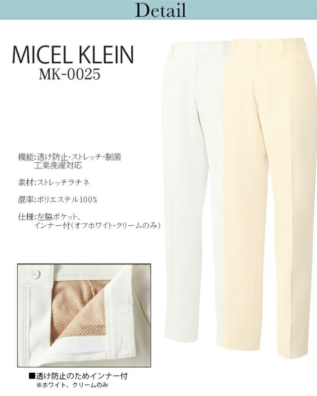 MICEL KLEIN パンツ 医療 白衣 レディーズ 白パンツ MK-0025 ミッシェルクラン パンツ 透け防止 ストレッチ 股下マチ ユニフォーム 医師 医療用パンツ 白衣デンタルクリニック ドクター エステ チトセ 看護師 受付 ホワイト ブラック