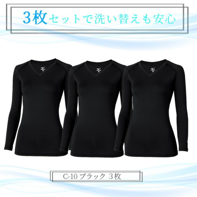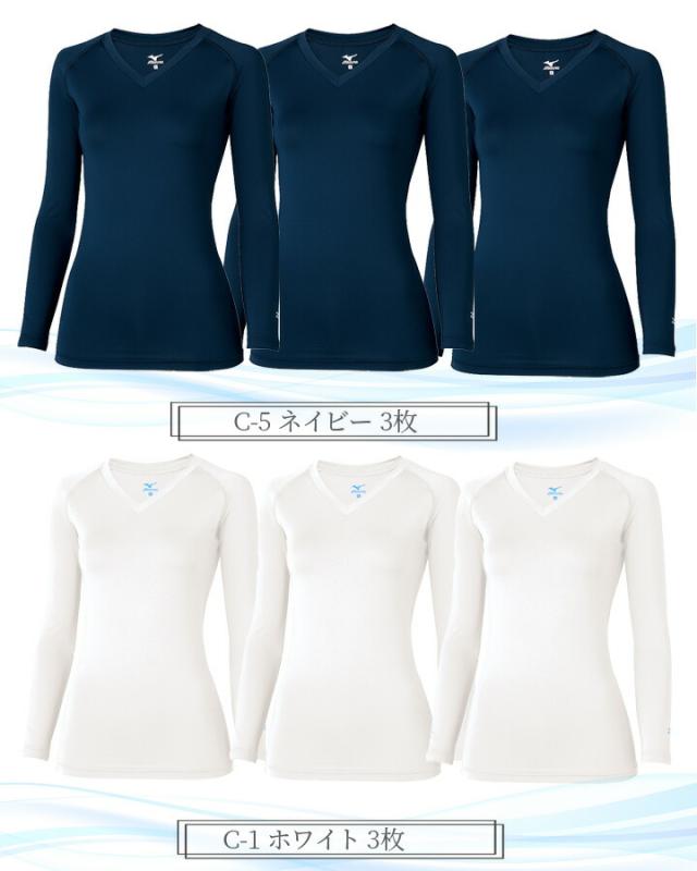 【3枚セット】【即日発送】ミズノ インナーシャツ レディース 9分袖 MZ-0154 医療用 白衣 看護師 ナース インナーウェア スクラブインナー クリニック 病院 吸汗速乾 ストレッチ オールシーズン 女性用 アンダーウェア ホワイト ブラック ネイビー