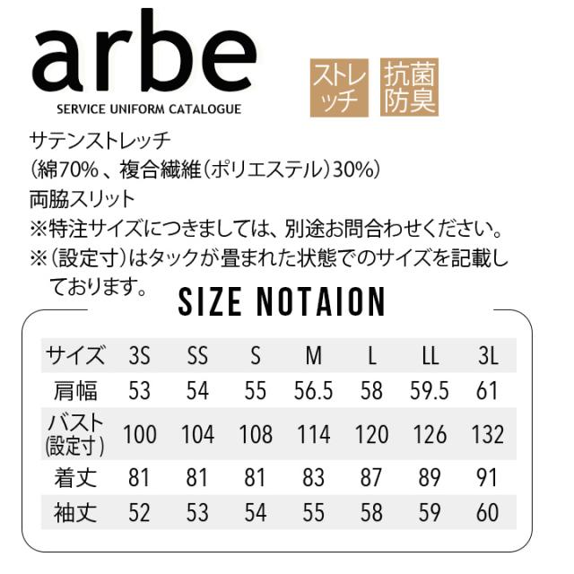 バックオープンシャツ(八分袖) arbe アルベ APBE REWIND RW-0004 【女性用】オシャレ シンプル 飲食店 サービス業 厨房 制服 レストラン ユニフォーム レディース チトセ