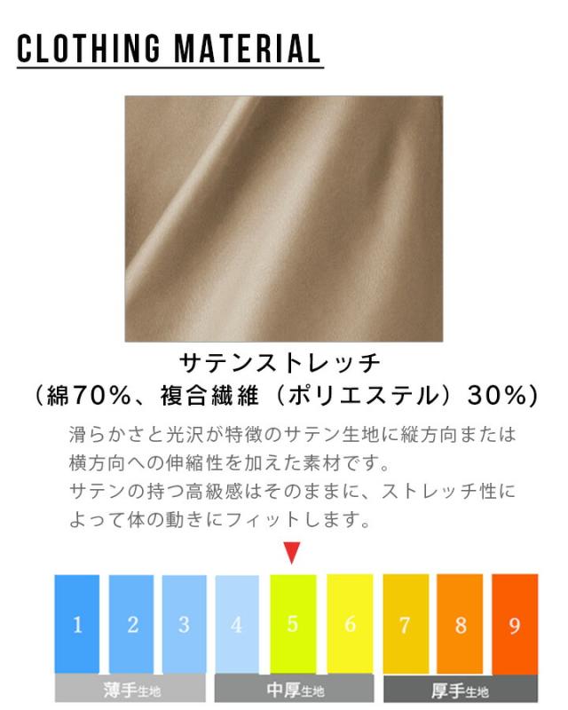 | 素材 | サテンストレッチ(綿70%、複合繊維(ポリエステル)30%) |