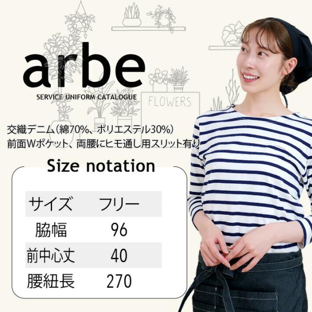 ショートエプロン 前掛け arbe アルベ T-8260 【男女兼用】カフェ 飲食店 サービス業 制服 レストラン ユニフォーム レディース メンズ デニム