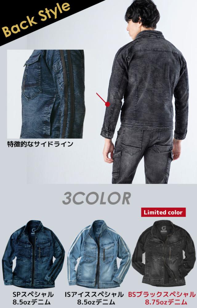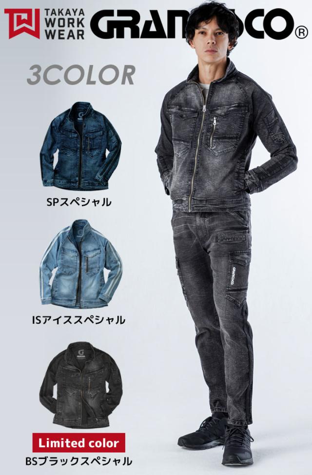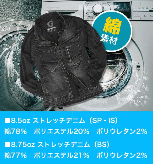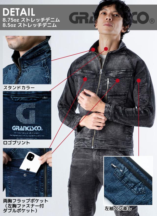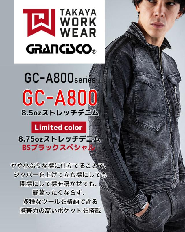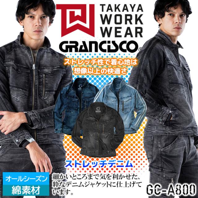 【即日発送】グランシスコ 作業服 デニム ストレッチ スキニージャケット GC-A800【アップデート版】ストレッチ 作業着 作業服 オールシーズン タカヤ商事 A800シリーズ