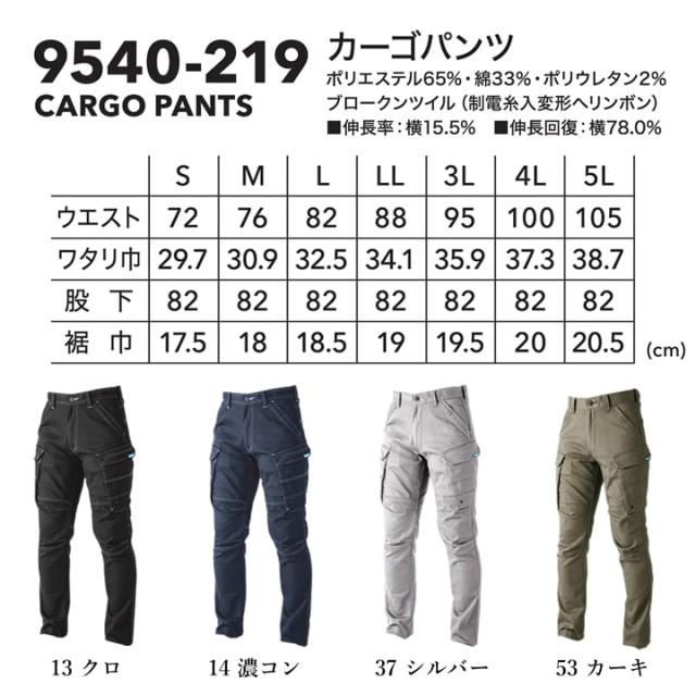 寅壱 トライチ カーゴパンツ 9540-219 ワークパンツ ズボン ストレッチ ヘリンボン 伸縮性 制電性 9540シリーズ 秋冬 年間 DIY 作業服 作業着 5L
