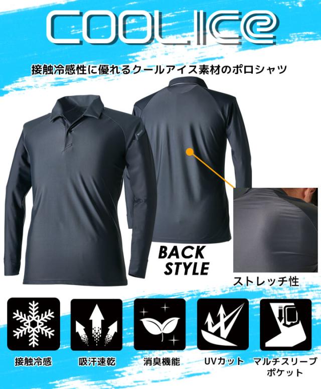 TSデザイン クールアイス 長袖 ポロシャツ 80751 春夏 接触冷感 吸汗速乾 消臭 UVカット メンズ 作業服 作業着 ユニフォーム TS-デザイン 藤和【この品番は刺繍不可商品です】
