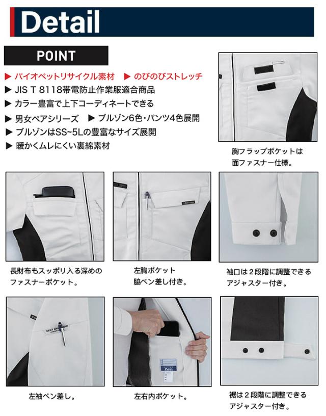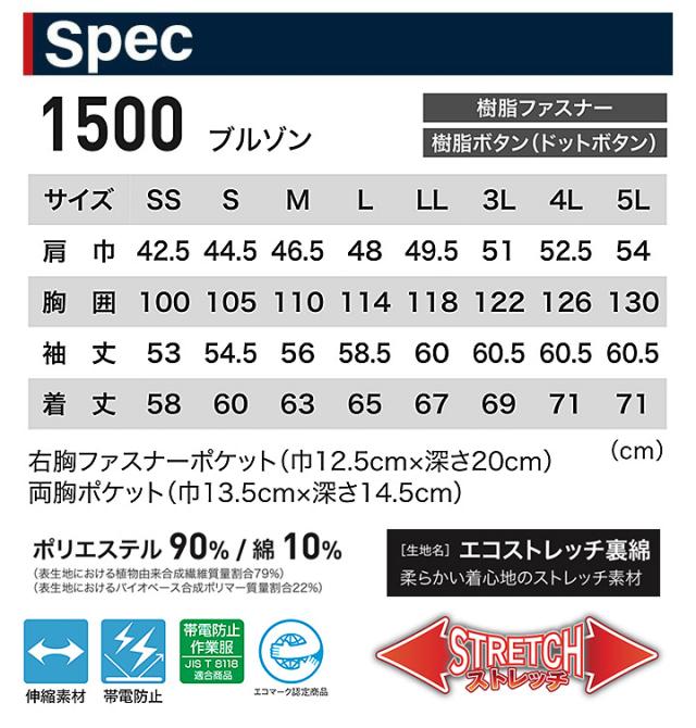 ジーベック ブルゾン 1500 伸縮素材 帯電防止 ストレッチ エコ裏綿 男女兼用 秋冬 ジャケット ジャンパー メンズ レディース 作業服 作業着 XEBEC