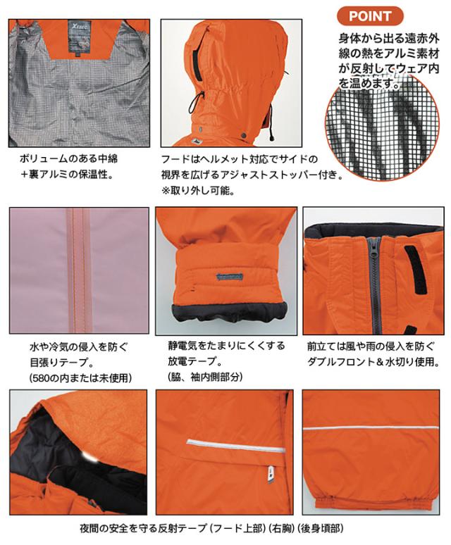 ジーベック 防水防寒ブルゾン 582 保温性 中綿 首内側フリース ジャンバー ジャケット メンズ 作業服 作業着 防寒着 防寒服 XEBEC