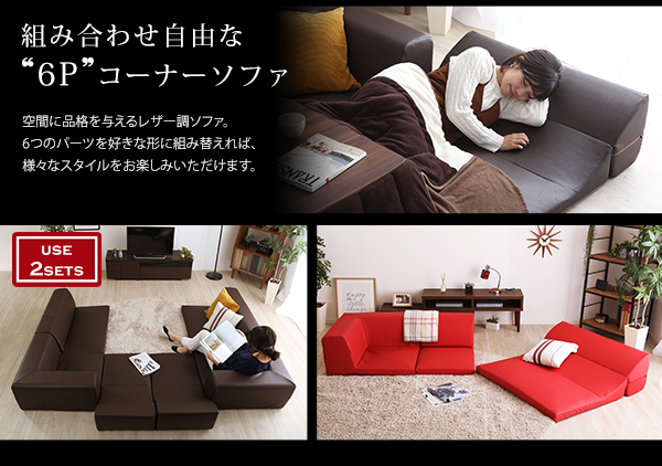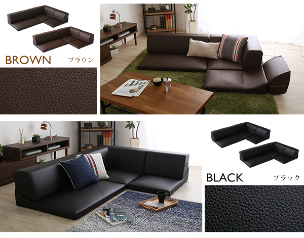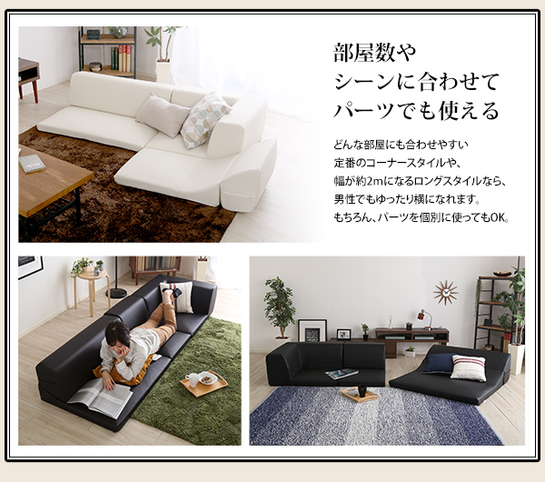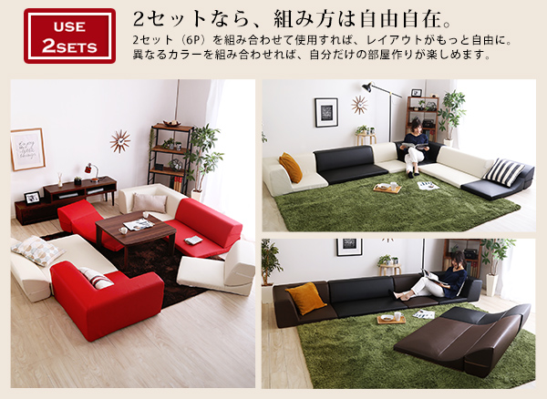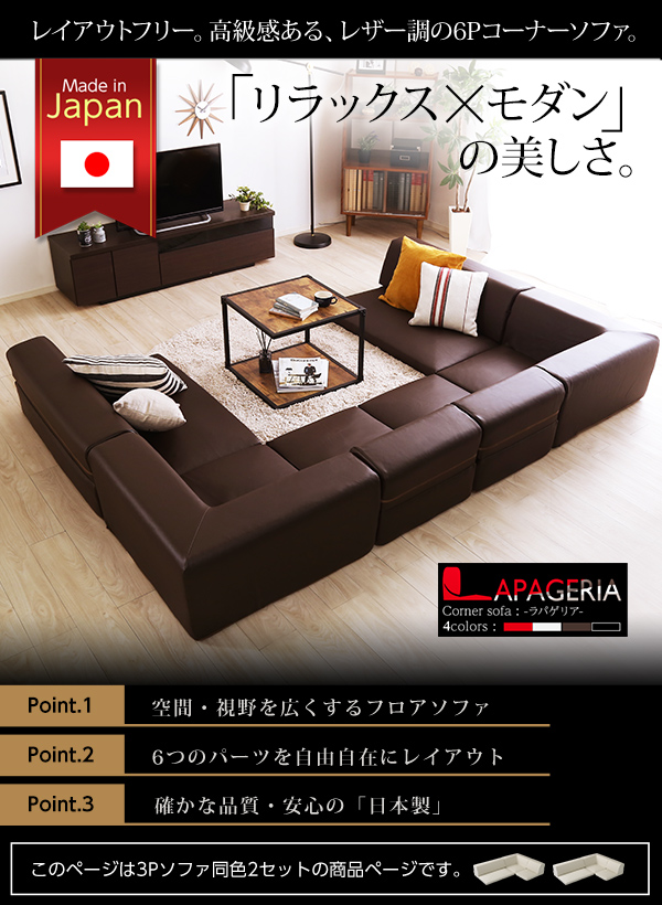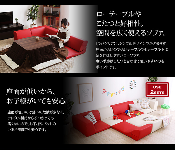 ローコーナーソファセット 【Lapageria-ラパゲリア-】 使い方自由自在 フロアソファ レザー調 くつろぎ コーナーソファ 3点 セット
