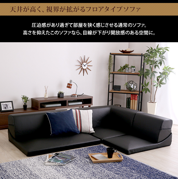 ローコーナーソファセット 「Lapageria-ラパゲリア-」 使い方自由自在 フロアソファ レザー調 くつろぎ コーナーソファ 3点 セット