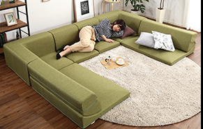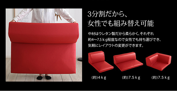 完成品でのお届けです。※コーナーは背もたれを倒せません。