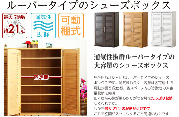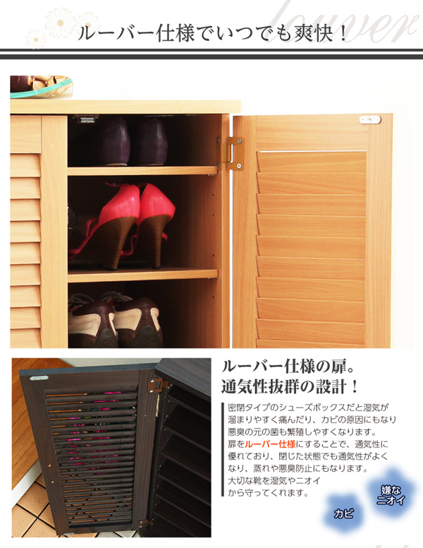 通気性抜群!ルーバー式シューズボックス「幅60cm・単品」(下駄箱・玄関収納)新生活