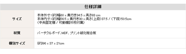 本体外寸:幅60x奥行き34.5x高さ93cm