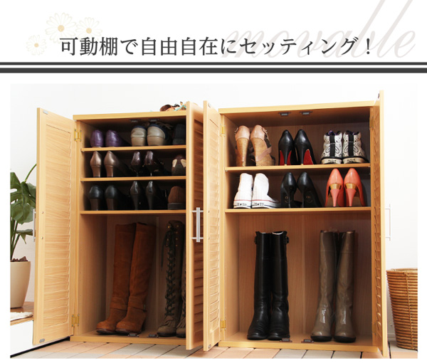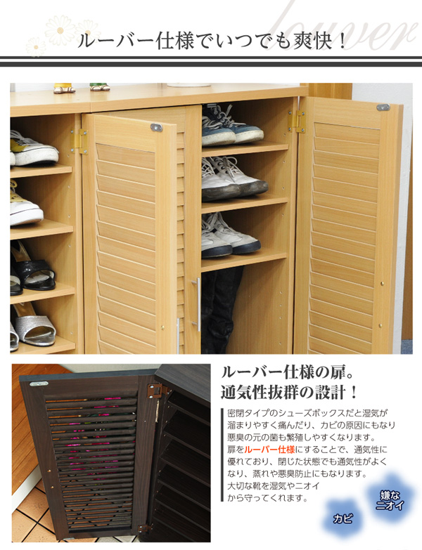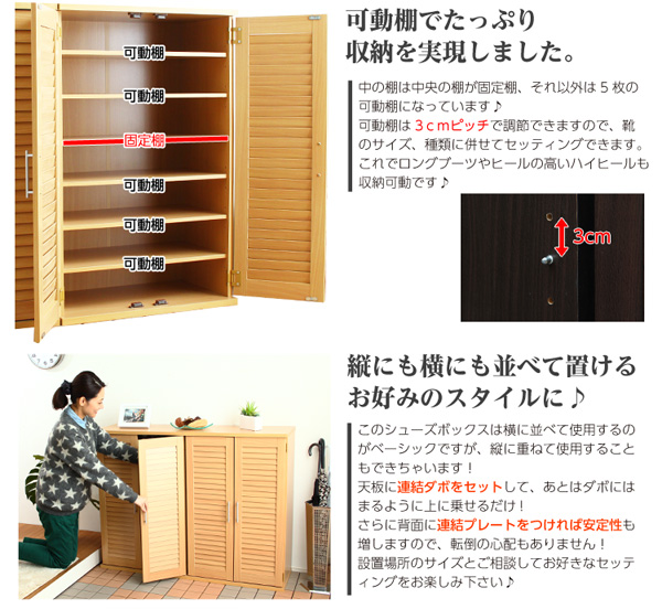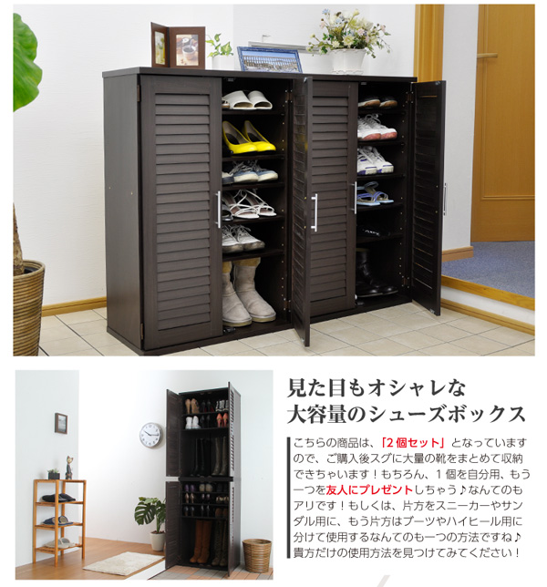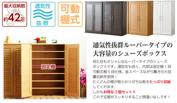 通気性抜群!ルーバー式シューズボックス「幅60cm・2個セット」(下駄箱・玄関収納)新生活