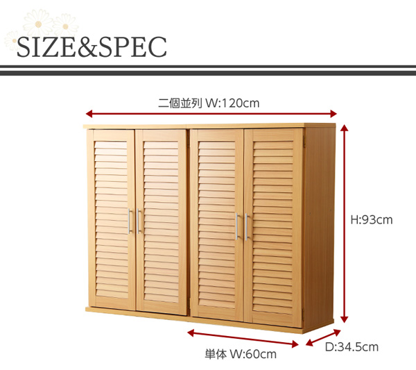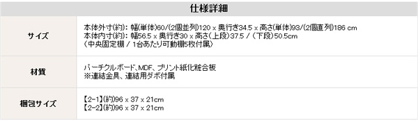 外寸:(約)幅(単体)60/(2個並列)120x奥行き34.5x高さ(単体)93/(2個直列)186 cm