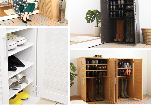 通気性抜群!ルーバー式シューズボックス【幅60cm・2個セット】(下駄箱・玄関収納)