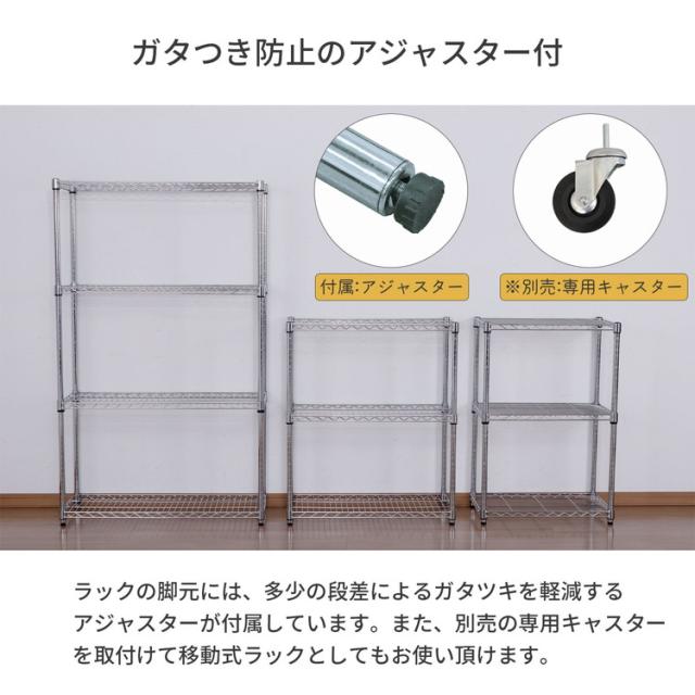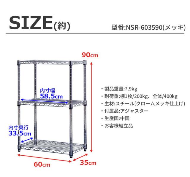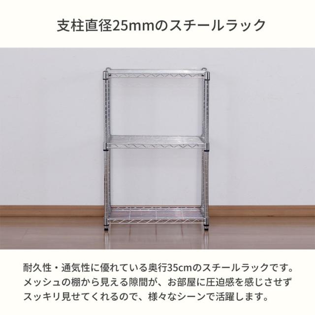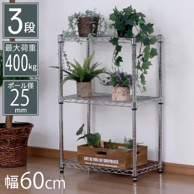 スチールラック 3段 60×35×90 クロームメッキ 大容量 キッチン リビング パントリー 倉庫 物置 ガレージ 衣類収納 ウォークイン クローゼット オーディオ 収納 多目的棚 可動棚 フリーラック
