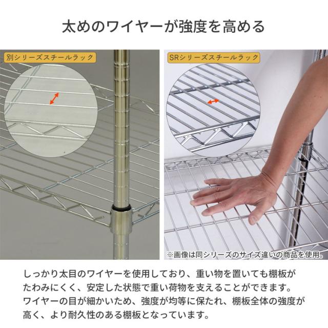 タテ・ヨコに細かく張られたワイヤーが、棚板の強度を均等にし、耐久性のある棚板となっています。