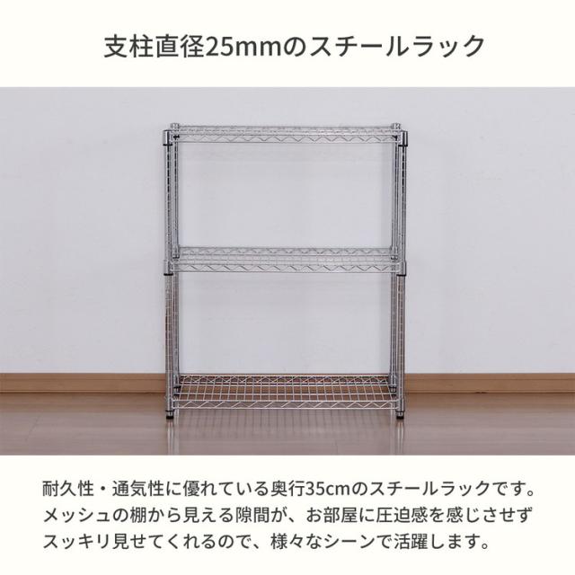 重い物も載せられる、収納力が高い奥行35cmタイプの支柱直径25mmスチールラック。