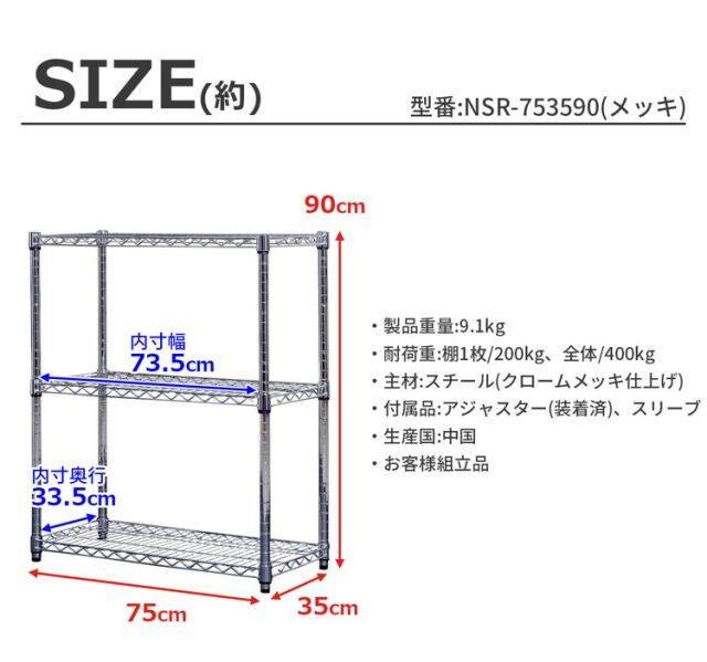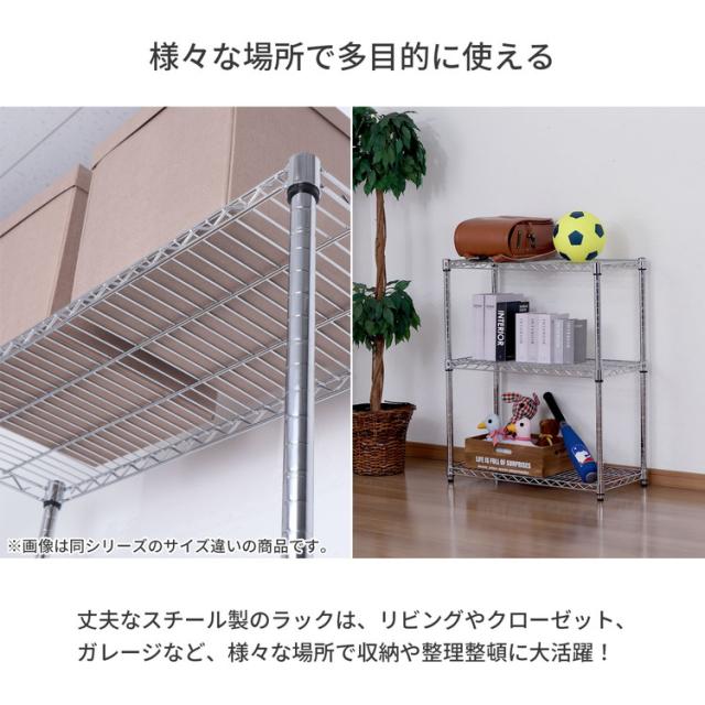 スチールラック 3段 75×35×90 クロームメッキ 大容量 キッチン リビング パントリー 倉庫 物置 ガレージ 衣類収納 ウォークイン クローゼット オーディオ 収納 多目的棚 可動棚 フリーラック