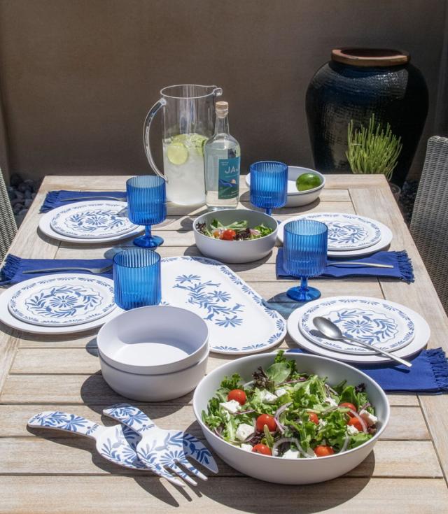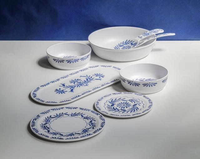 ホワイトベースにブルーのプラントデザインが特徴のメラミン食器です。青磁をイメージしたヨーロッパスタンダードデザインです