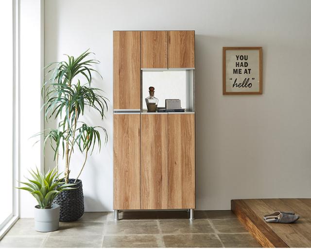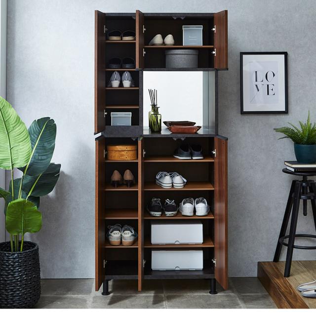 シューズボックス ハイタイプ 幅75cm ミラー付き 国産 完成品 奥深 靴箱 下駄箱 シューズラック 玄関 収納 大川家具 おしゃれ 北欧 玄関収納(代引不可)【送料無料】