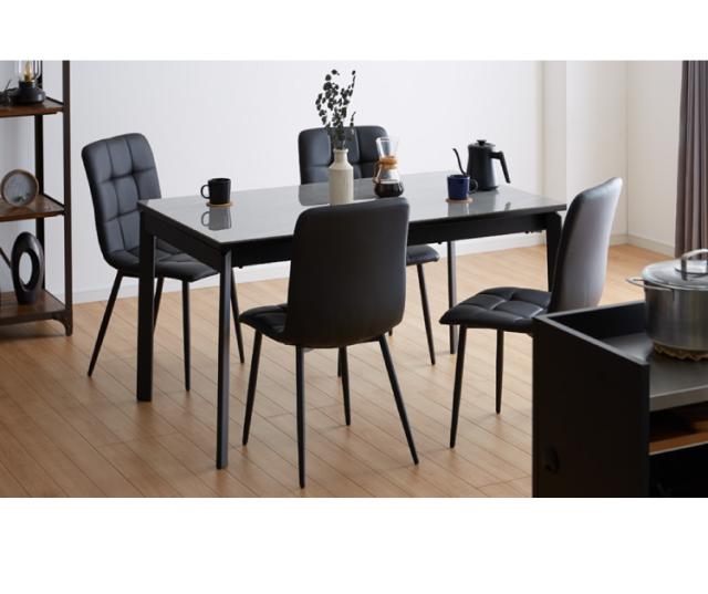 セラミック 伸縮 ダイニングセット 4人掛け 5点セット ダイニングテーブルセット 伸長式 幅130~幅170 合皮 アイアン 鏡面 ダイニングチェア 耐水 耐熱 大理石調(代引不可)